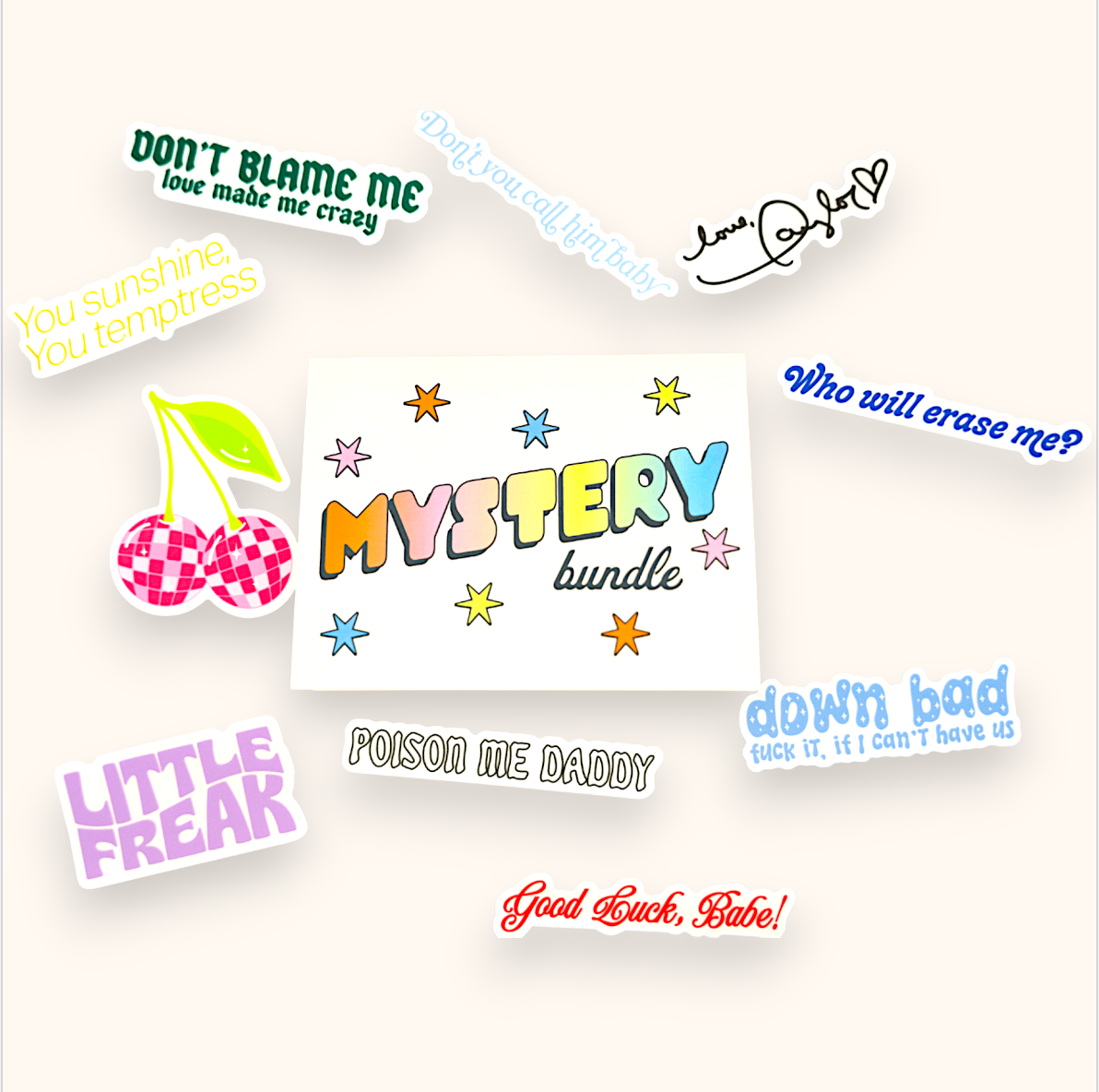 Each pack is curated by artist and pulled at random from our bestselling designs — lyrics & iconic phrases. No two clings in the same pack will be the same.